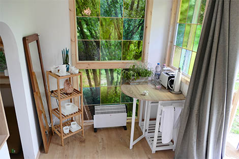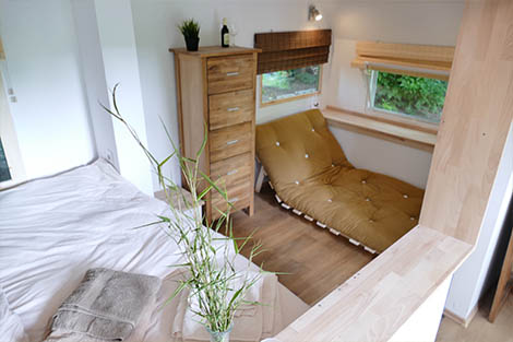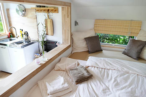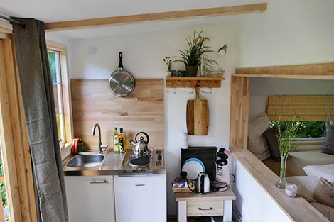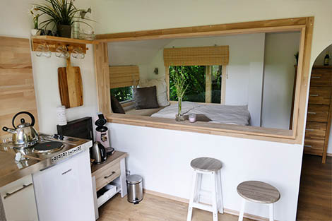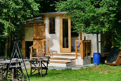 Im Hinteren Teil unseres 4000qm Grundstücks in Heidelberg / Kircheim steht das kleine romantische MINIHAUS. Errichtet aus einem komplett umgebauten Wohwagen mit Anbau beträgt die Wohnfläche ca. 20qm. Das MINIHAUS bietet Platz für drei Personen: das Doppelbett misst 180cm x 200cm und als dritte Schlafgelegenheit ist ein Futon mit Gestell vorhanden (190cm x 90cm). Somit ist das MINIHAUS die Perfekt Unterkunft für ein Pärchen mit Kind. Für 3 Erwachsene wird es fast schon einwenig zu eng.