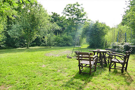 Der Garten um das MINIHAUS herum ist riesig und teilweise wächst er wild mit "gefährliche Pflanzen" wie dem Hercules, einer Art extrem-Brennessel. Viel Bambus, Brombeeren, Apfel-, Birnen, und Pfirsichbäume, Mirabellen und Kirschen sowie ein riesiger, uralter Wallnussbaum in dessen Schatten das MiniHaus steht. Vor dem MINIHAUS stehen Gartenmöbel am Grillplatz und Liegestühle laden zum Chillen ein. Mit dem Auto können Sie direkt durch den Garten bis vor das MINIHAUS fahren.
